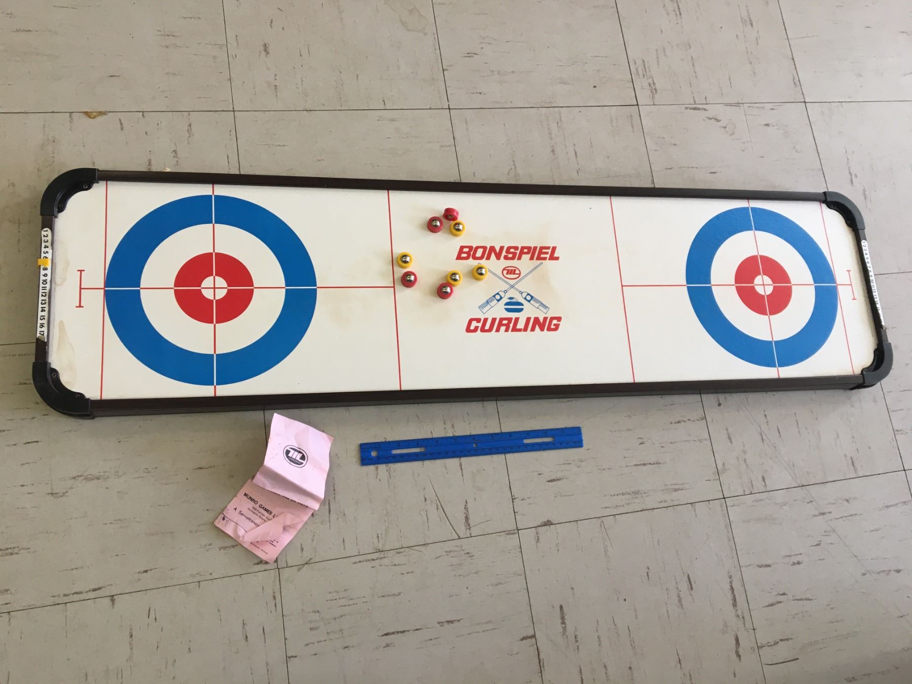 VINTAGE MUNROE GAMES CURLING BOARD WITH PIECES