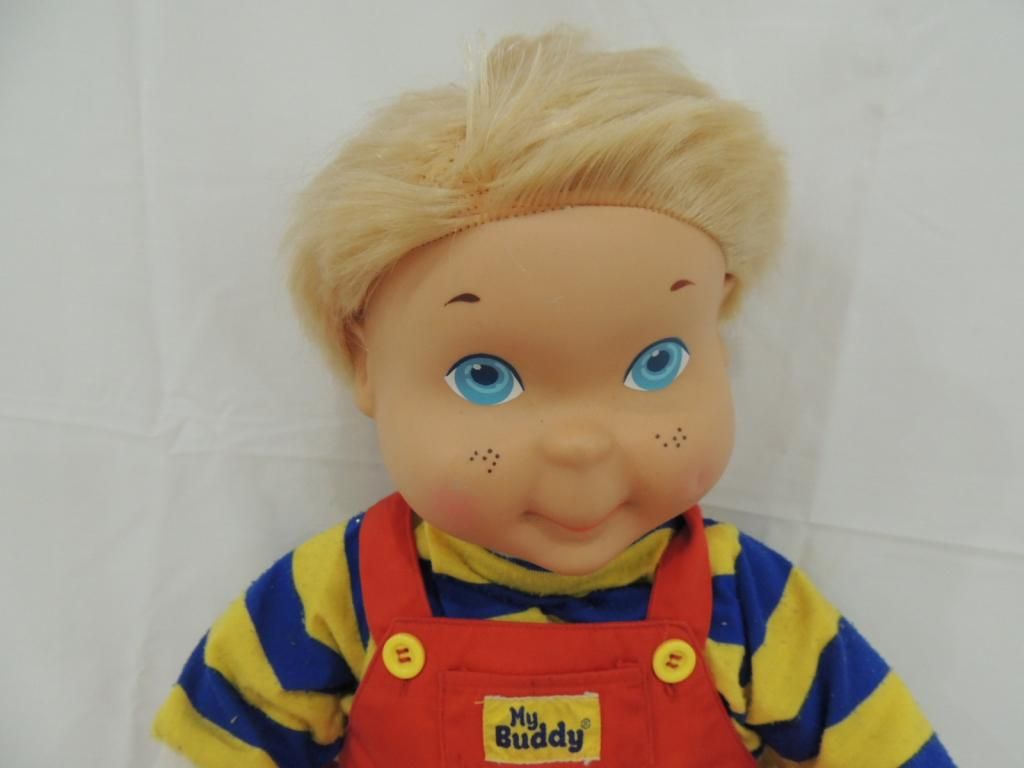 VINTAGE PULSH BODY MY BUDDY DOLL WITH BLONDE HAIR. 22" TALL AS SHOWN. SEE PHOTO FOR MORE DETAILS.