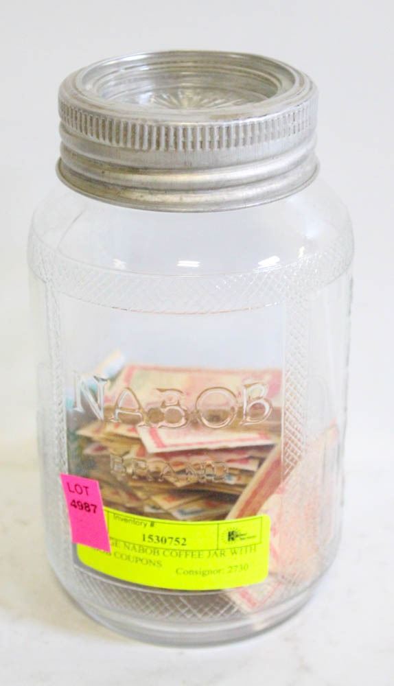 VINTAGE NABOB COFFEE JAR WITH NABOB COUPONS