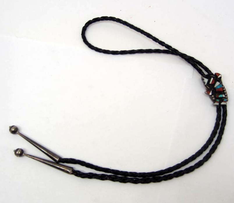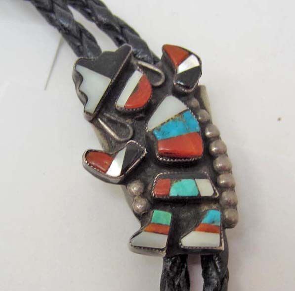 Rainbow Man is approx. 1.25" tall. Inlaid w/ coral, mother of pearl, turquoise and onyx.