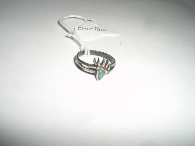 VINTAGE-NAVAJO INDIAN HANDMADE STERLING SILVER RING WITH A BEAR CLAW AND INLAID TURQUOISE!! RING CAME OUT OF SAFE!! ***Coin, Currency & All Items Listed in this auction - Grades, Conditions and Values are not Safe Deposit Coins LLC Responsibilty. Grades, Condition and Values are determined by Consigner(s) & Buyers ONLY
