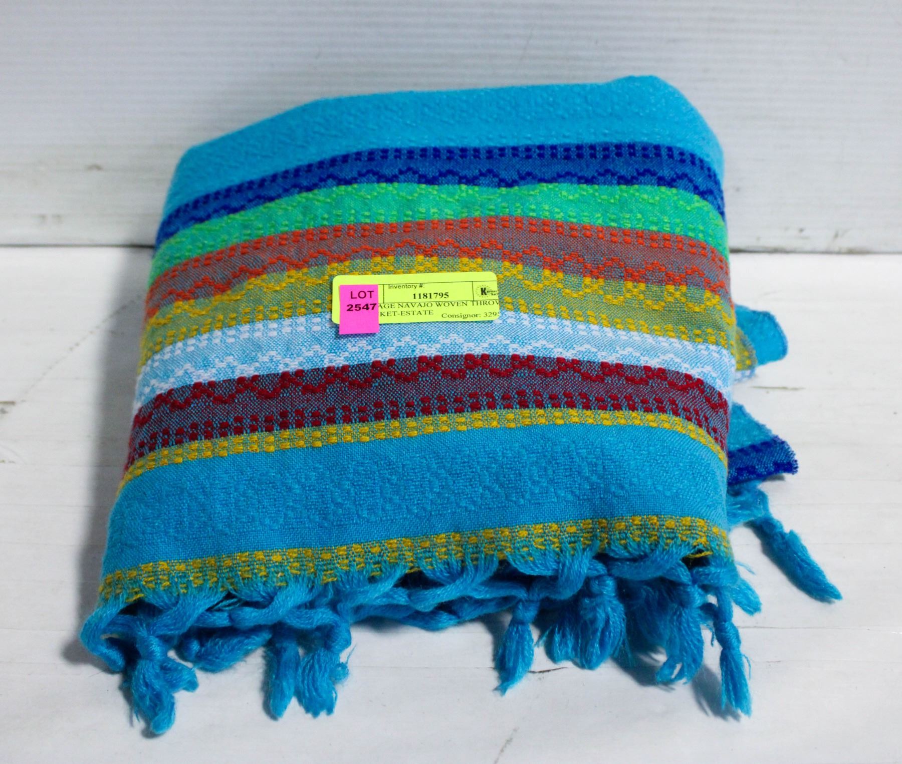VINTAGE NAVAJO WOVEN THROW BLANKET-ESTATE