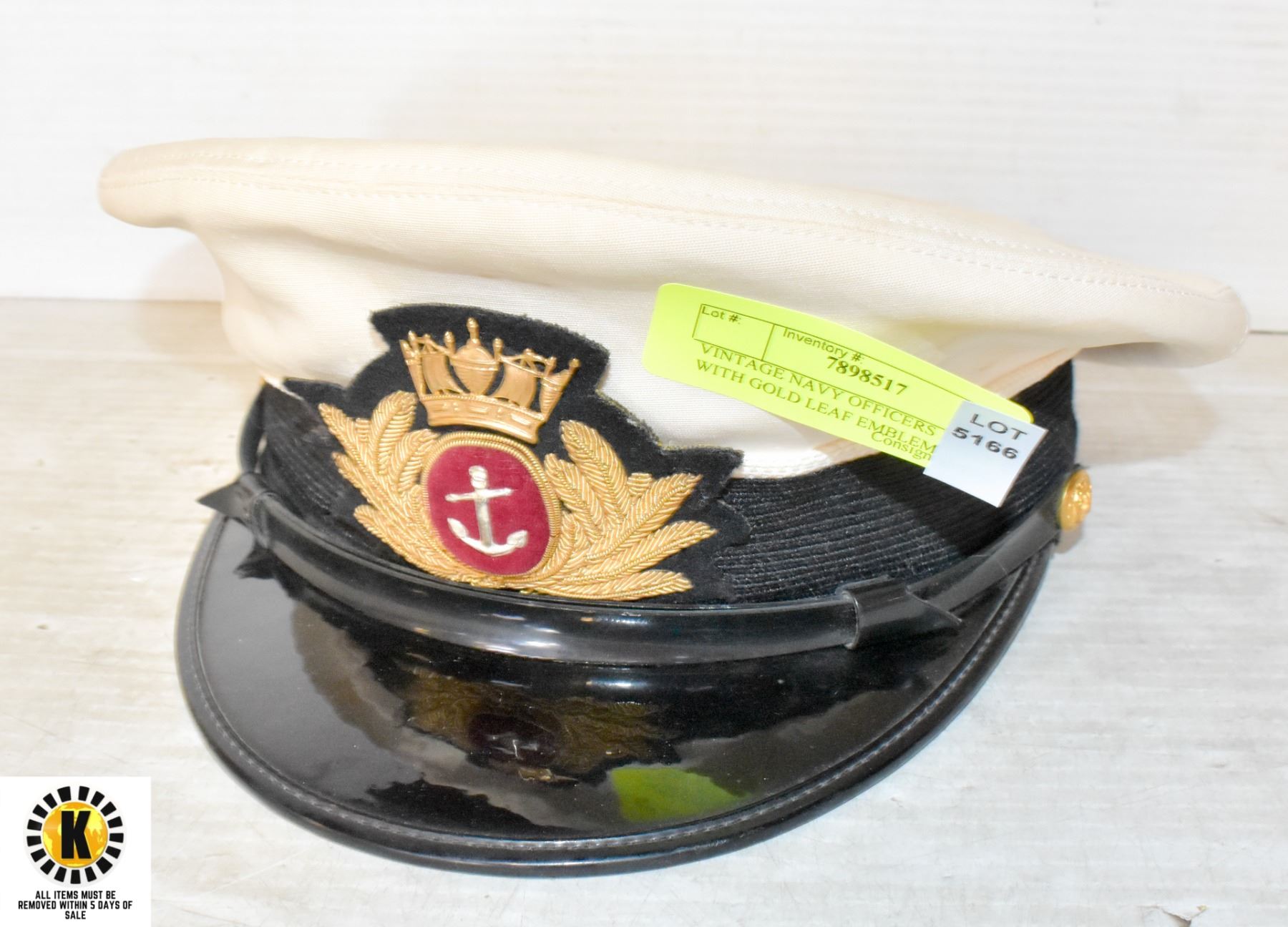 VINTAGE NAVY OFFICERS HAT WITH GOLD LEAF EMBLEM