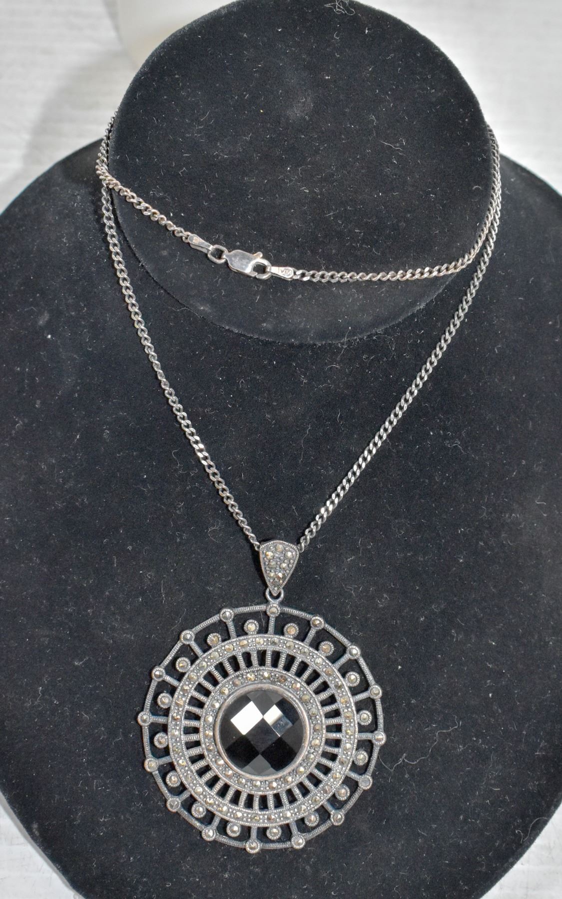 BLACK STONES, LARGE PENDANT, BLACK CHAIN