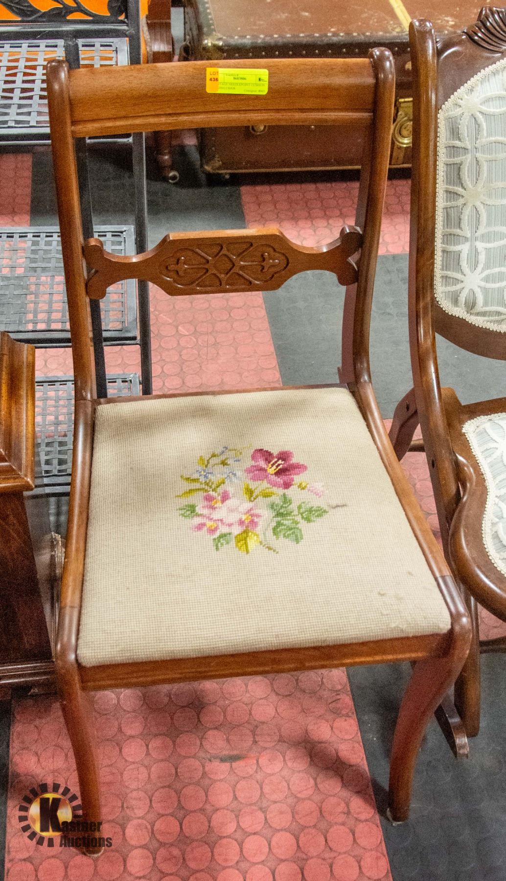 VINTAGE NEEDLEPOINT CUSHION DINING CHAIR