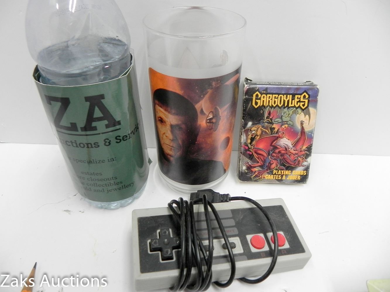 VINTAGE NES NINTENDO CONTROLLER AND GARGOYLES PLAYING CARDS & STAR TREK CUP