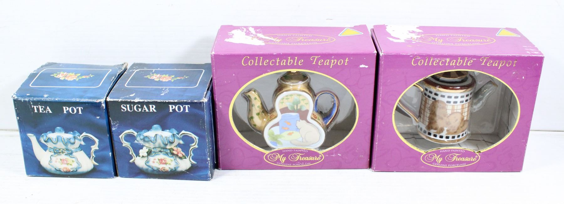 (2) MY TRESURE PORCELAIN MINATURES GENIUNE PORCELAIN W/(2) KC TEAPOT & SUGAR POT
