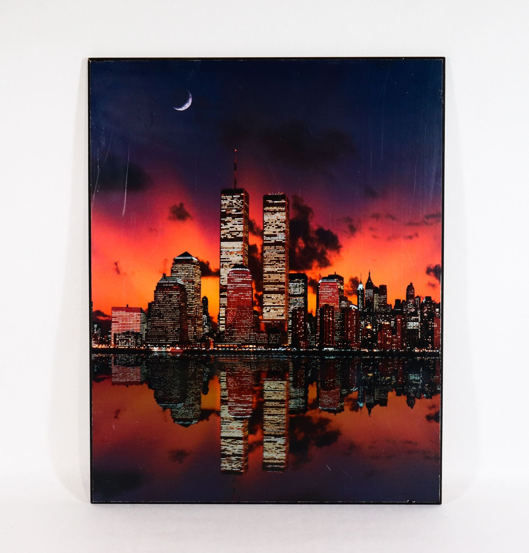 APPROX 20" X 16". MOONLIT NIGHT SKYLINE