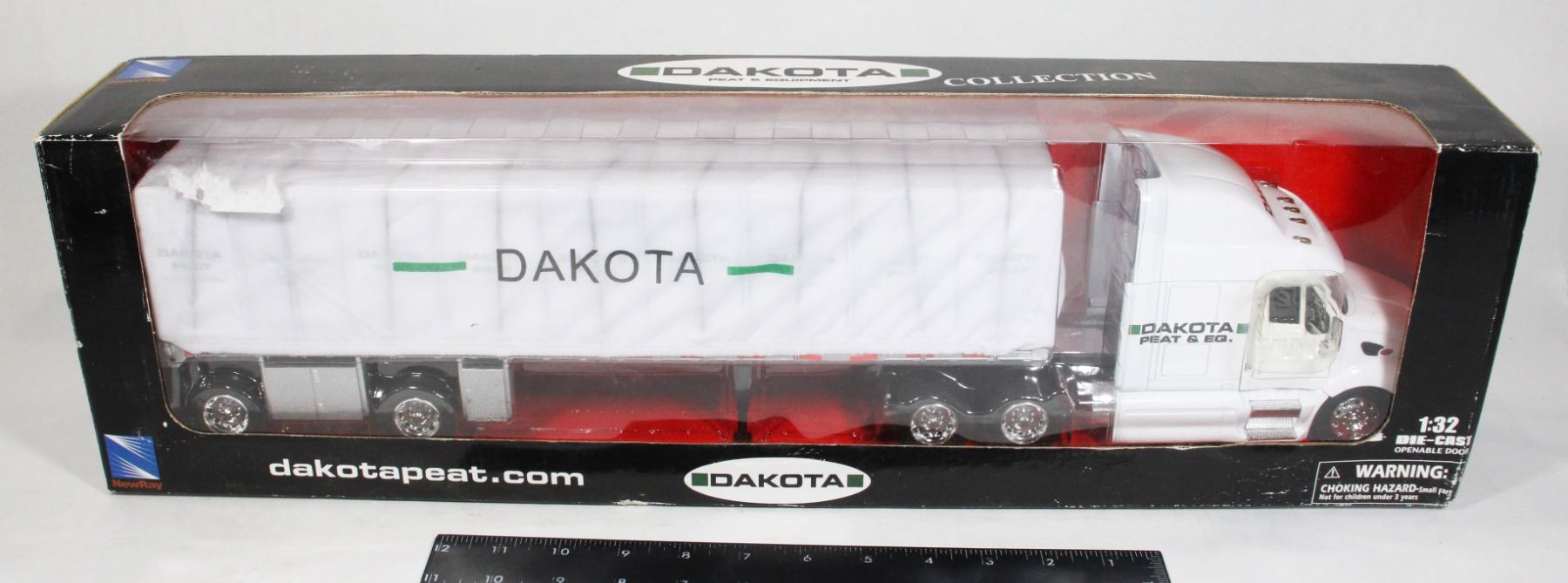 VINTAGE NEWRAY 1:32 PETERBILT 387 LONG HAUL TRUCKER WITH A DAKOTA PEAT TRAILER.7X24".