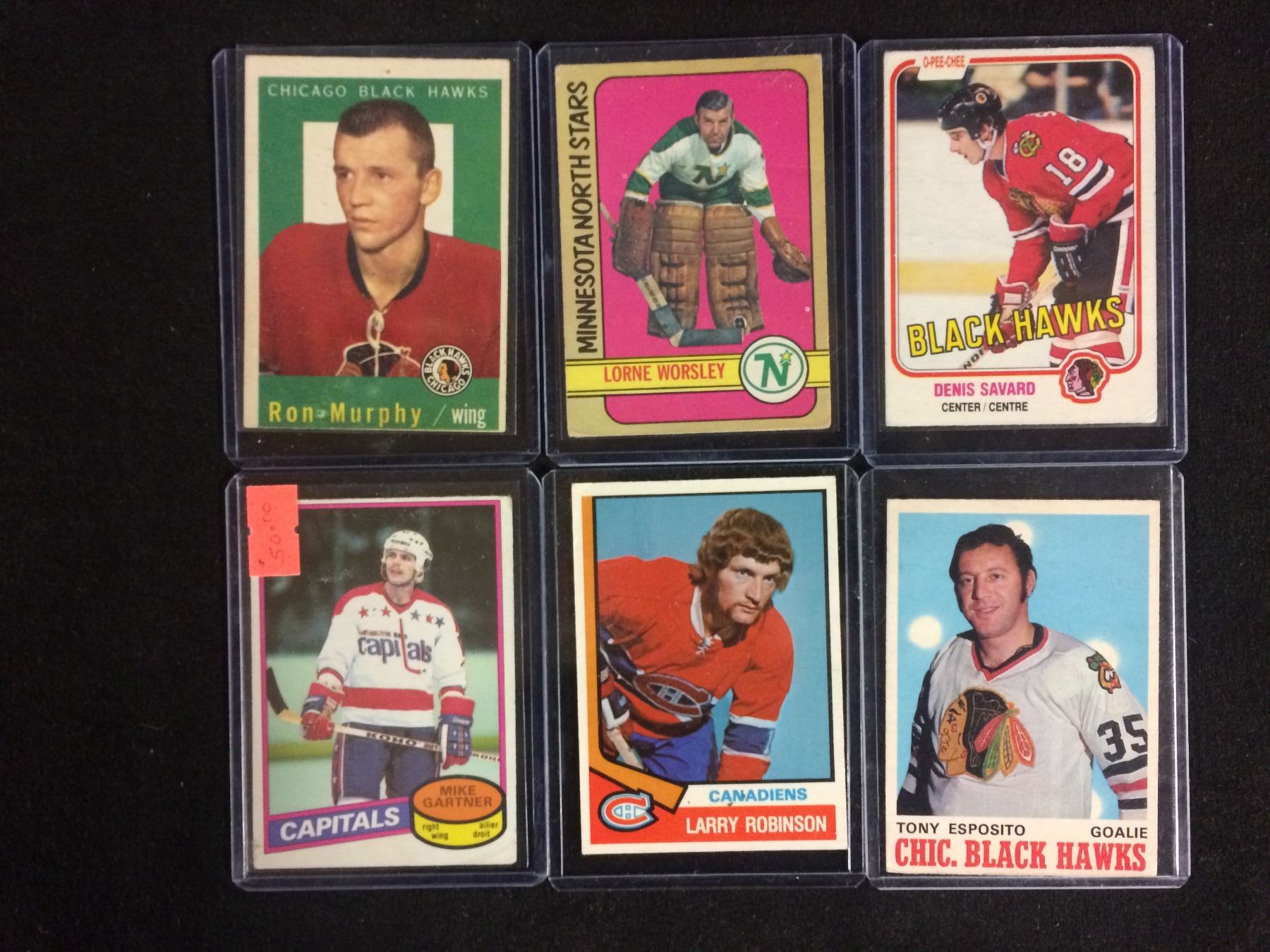 VINTAGE NHL STARS HOCKEY CARD LOT (MURPHY, WORSLEY, SAVARD, GARTNER, ROBINSON, ESPOSITO)