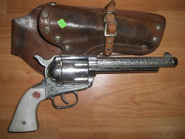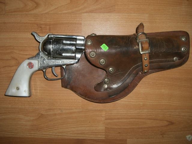VINTAGE NICHOLS STALLION 45 MARK II TOY CAPGUN STAMPED *NICHOLS STALLION MARK II* SAME CAP GUN CURRENTLY SELLING ON EBAY FOR $270.00 WITH 8 BIDS AND 6 DAYS LEFT!! HEAVY DUTY IN GREAT CONDITION COMPLETLEY WORKS AND COMES WITH ORIGINAL LEATHER CAP GUN HOLSTER!! ITEM CAME OUT OF ESTATE!! ***Coin, Currency & All Items Listed in this auction - Grades, Conditions and Values are not Safe Deposit Coins LLC Responsibilty. Grades, Condition and Values are determined by Consigner(s) & Buyers ONLY