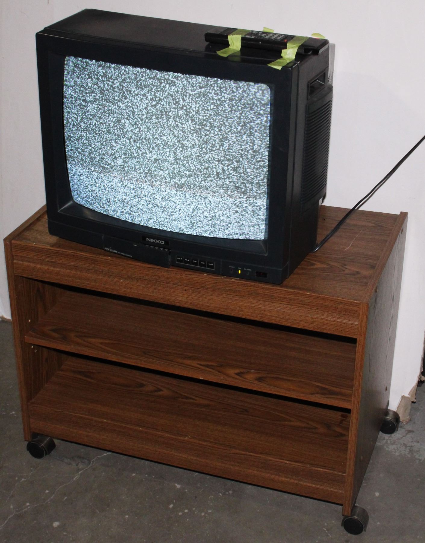 19" SCREEN. ON ROLLING TV STAND. TV IS MODEL NTV 2050RS