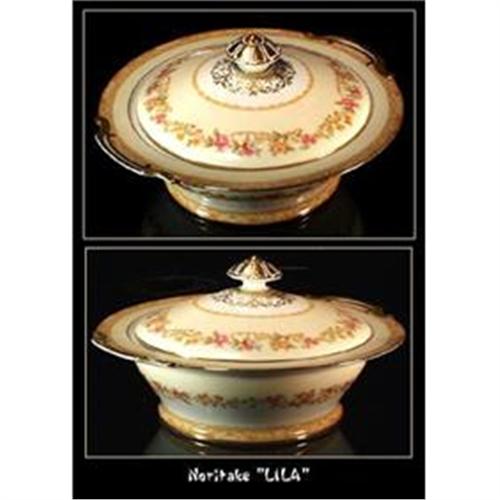 Up for your consideration is Noritake porcelain set in the LILA pattern. It is decorated with pink roses and yellow flowers , and accented with hand applied gold on the rim and bases, total of 47 pieces in all! This is hand decorated porcelain circa 1920-30's. All in very good condition without chips, cracks, fading or wear. Marked with Noritake logo and LILA pattern emblem on the bottom. Don't miss this opportunity to buy this exquisite set of the pre WWII era. For Ebay Live Auctions photos are automatically reduced, so if you need to see larger, more detailed pictures or more photos we may have, please email us.