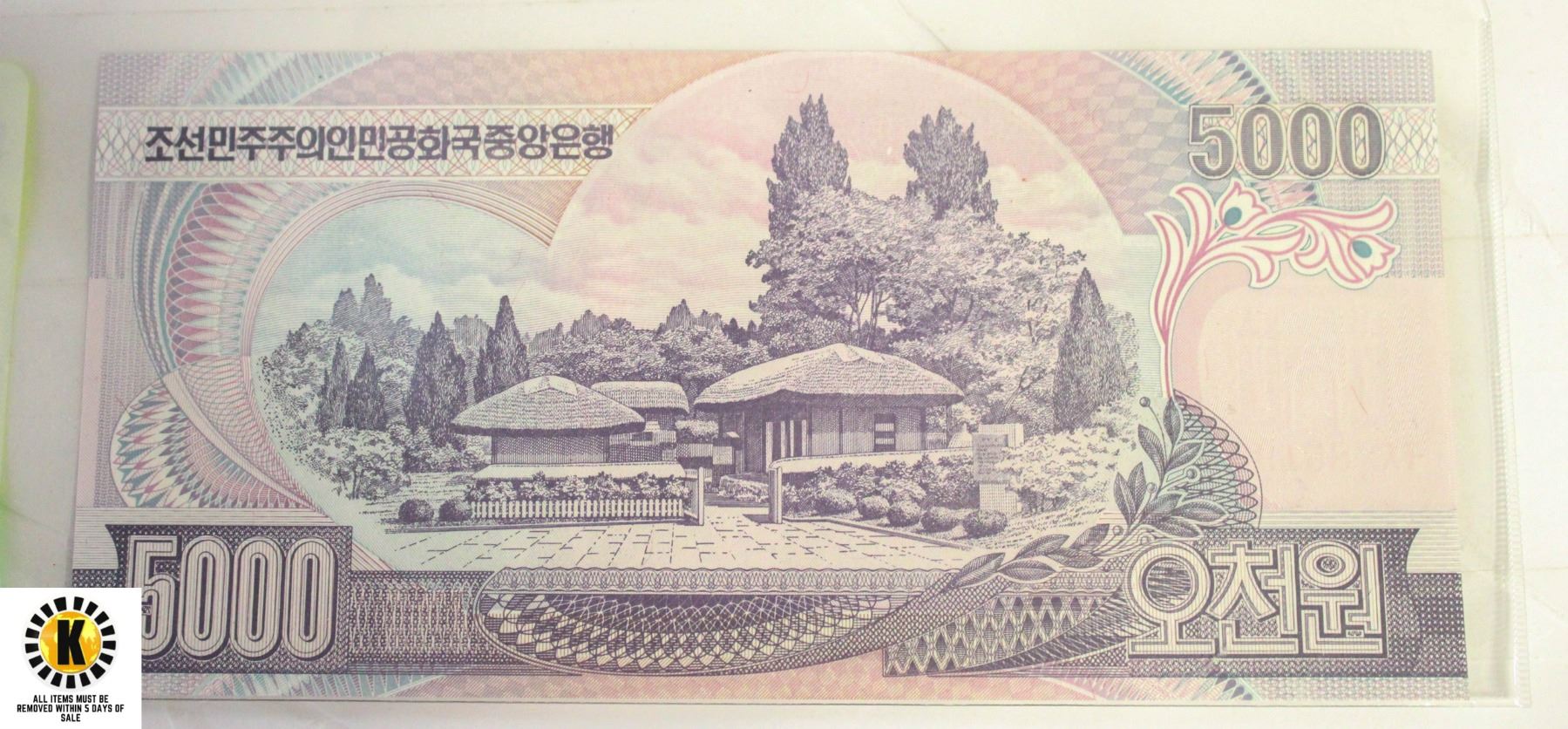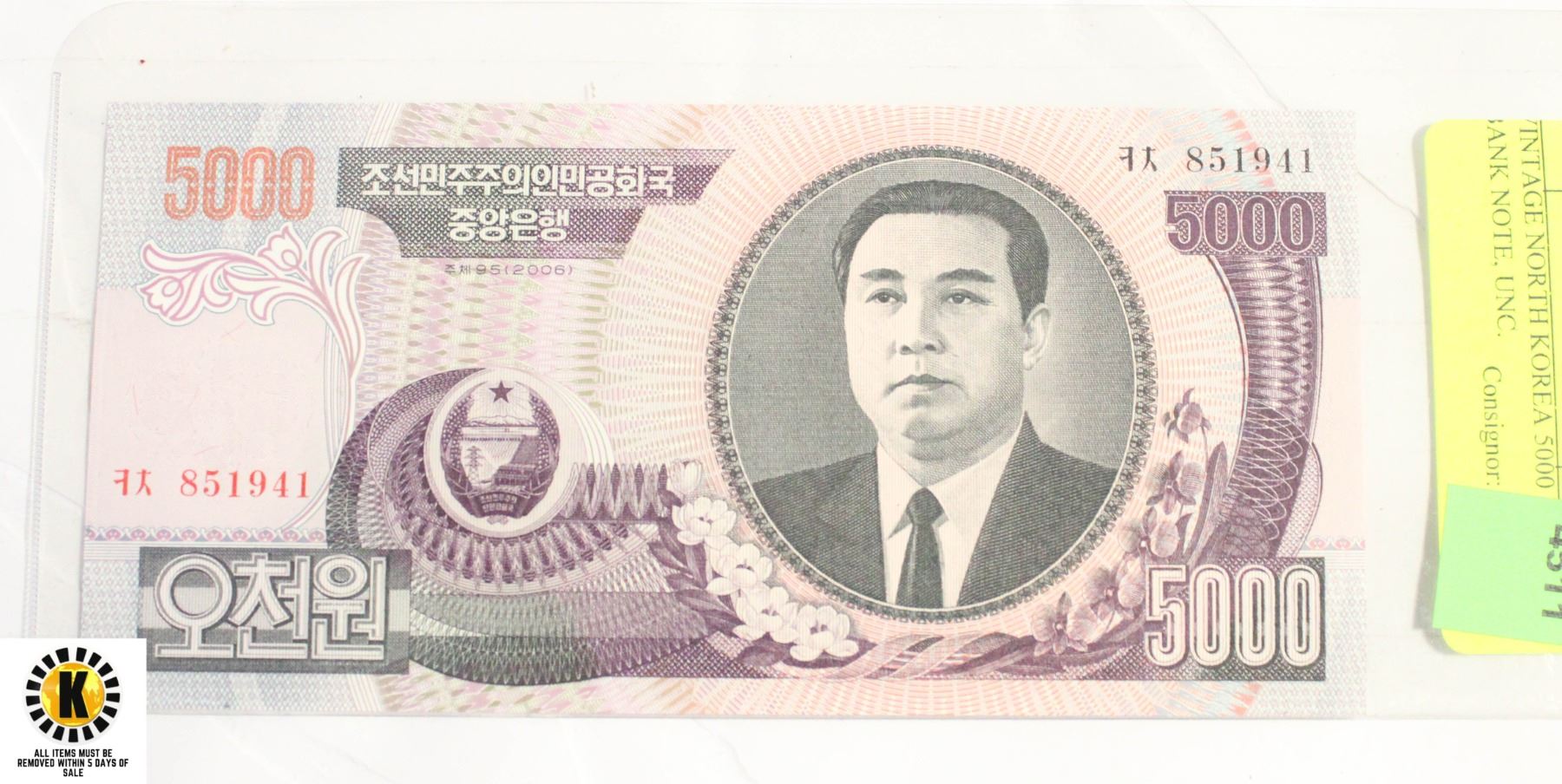 VINTAGE NORTH KOREA 5000 WON BANK NOTE, UNC.