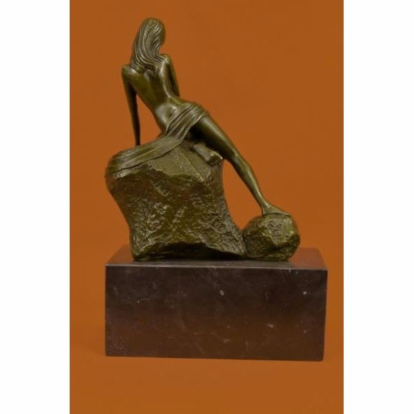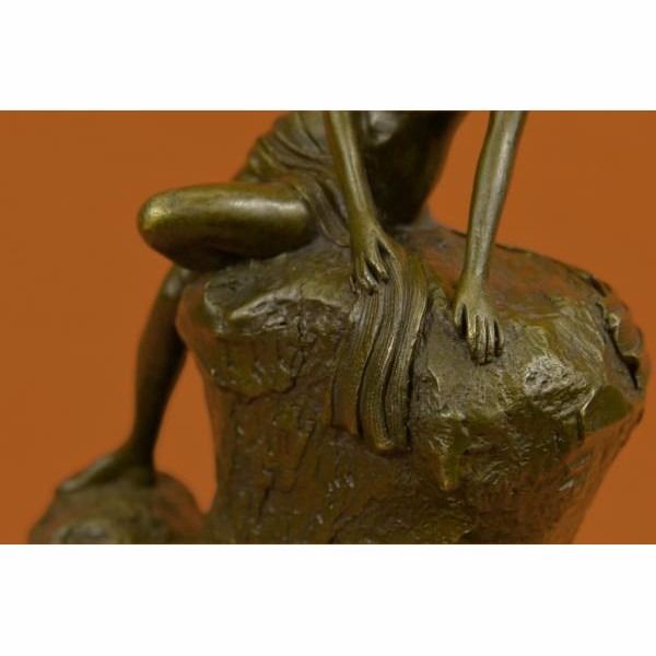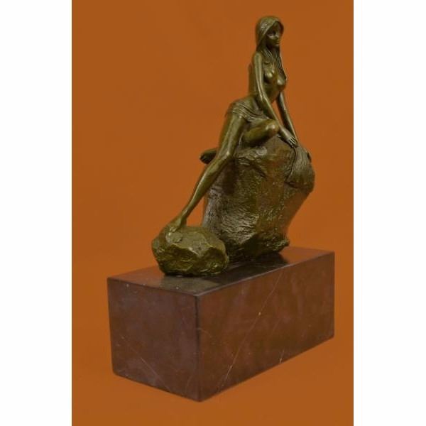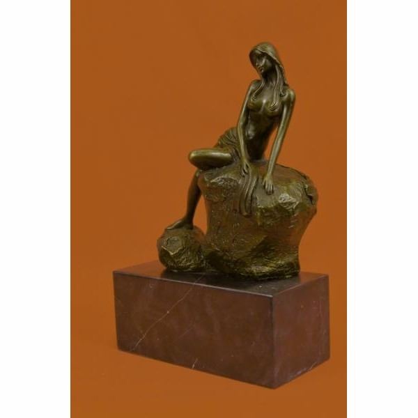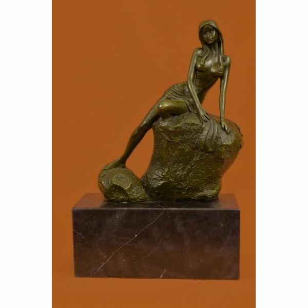 This piece by the  notable artisan, Milo, features a young girl  sitting atop a rock. She folds her body up underneath her as she allows her head  to rest on her knee. Her eyes are closed and her flowing hair seems to mimic the  flowing draping of her garment, that reveals just a touch of her shoulder and  back. This is an excellent piece featuring the lost wax method of casting,  founded thousands of years ago ensuring an exquisitely detailed sculpture that  will add grace and beauty to your business or home.                               Condition:   This sculpture is in perfect condition.        Bronze Dimensions with Marble Base:Height 10" x Width 6.5"   Marble Dimensions:6.5 X 3.5"   Height without base: 7"    Weight :9 LBS   Inventory :   35XNCH0083953