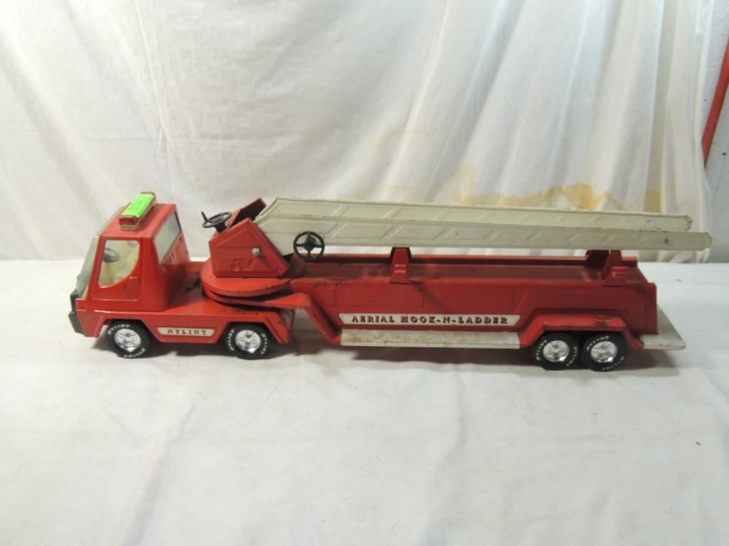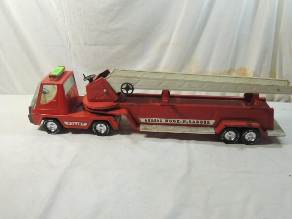 NULINT AERIAL HOOK N LADDER FIRE TRUCK TOY, PRESSED METAL FIRE TRUCK, VINTAGE FIRE TRUCK, CHILDRENS TOY AS SHOWN SEE PHOTO FOR MORE DETAILS