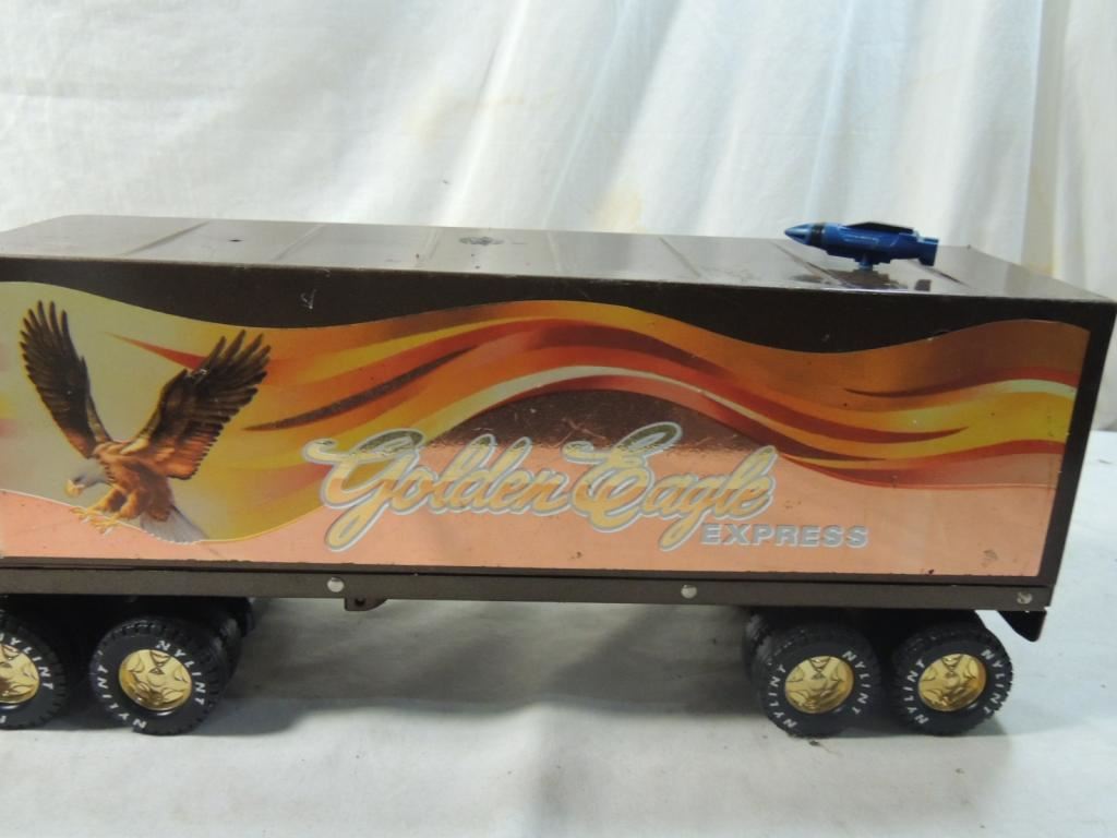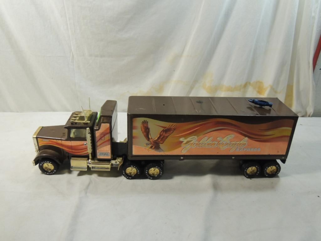 GOLDEN EAGLE EXPRESS SEMI TRUCK AND TRAILER, VINTAGE TOY TRUCK, NYLINT PRESSED METAL TRUCK, TOY TRUCK, AS SHOWN SEE PHOTO FOR MORE DETAILS.