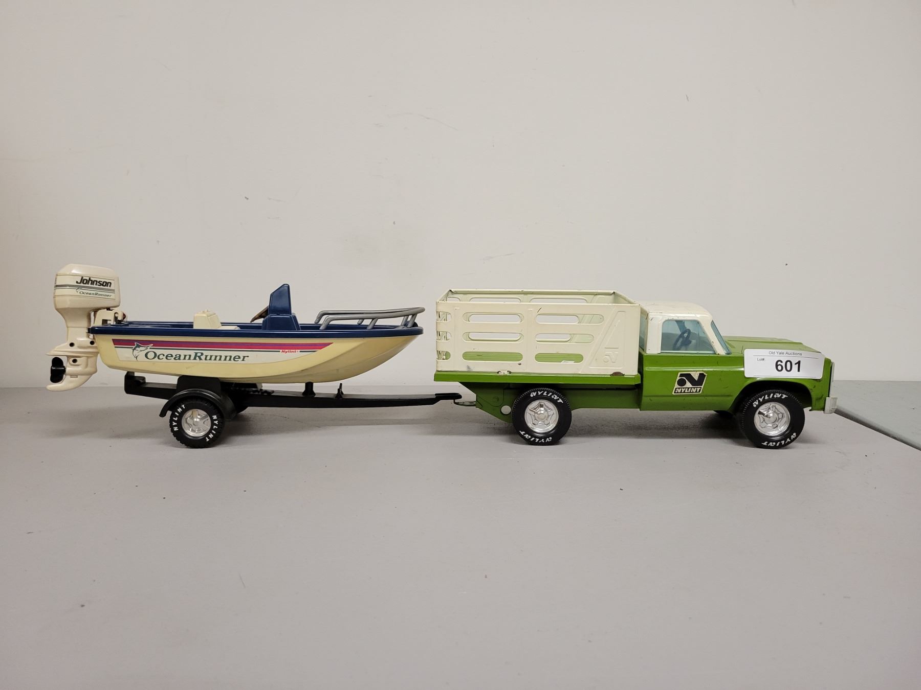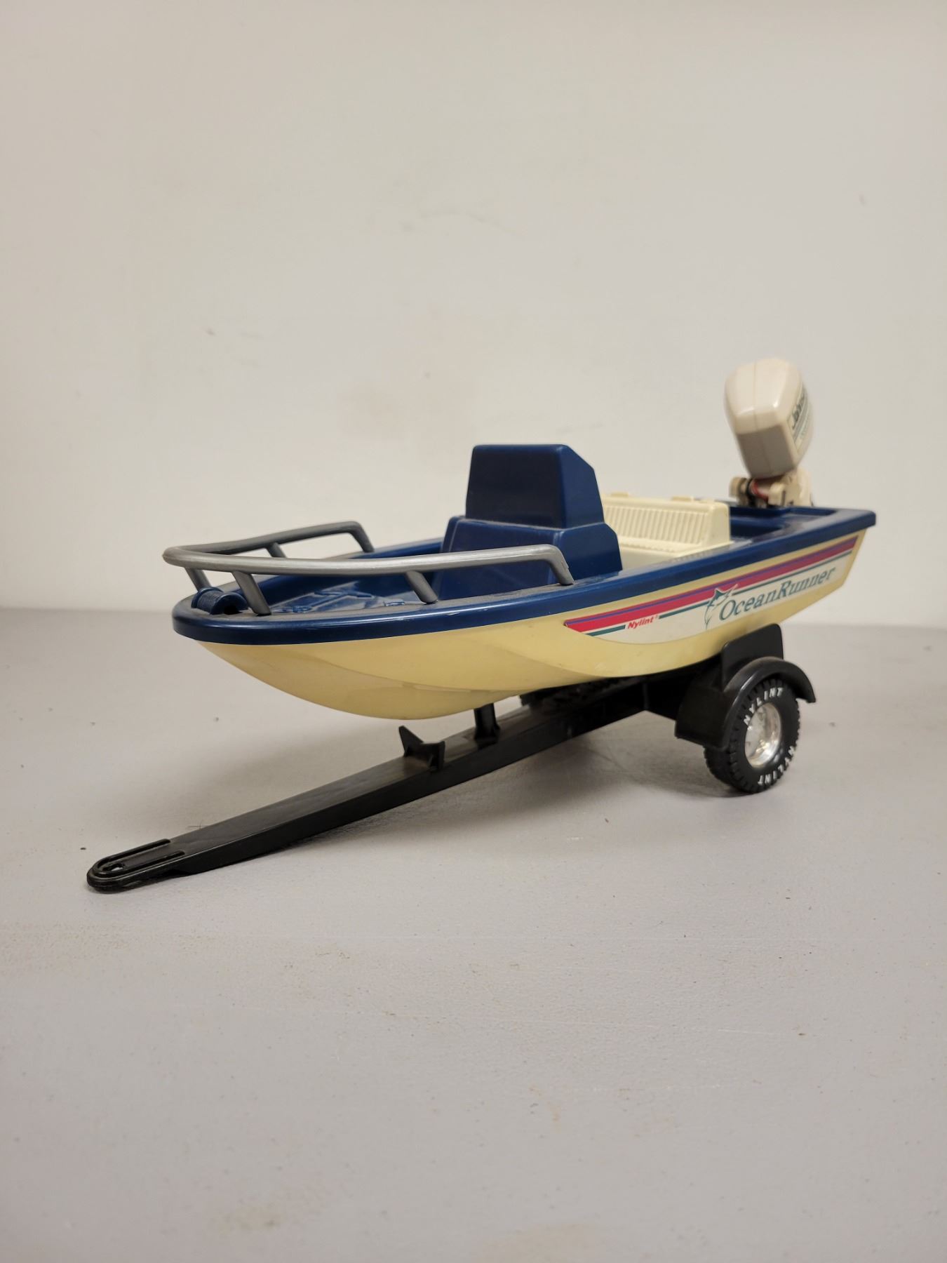 BOAT BATTERY OPERATED, TESTED WORKING CONDITION, TRUCK & BOAT COMBINED LENGTH APPROX 29" LONG