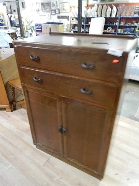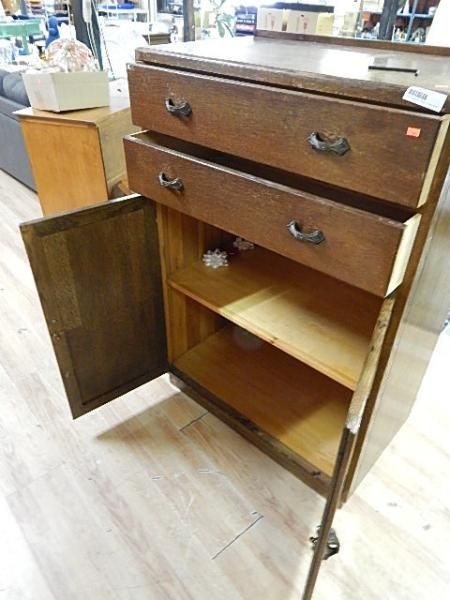 VINTAGE OAK CABINET - TALL - 2 DRAWER - 2 DOOR