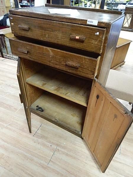 VINTAGE OAK CABINET - TALL - 2 DRAWER - 2 DOOR
