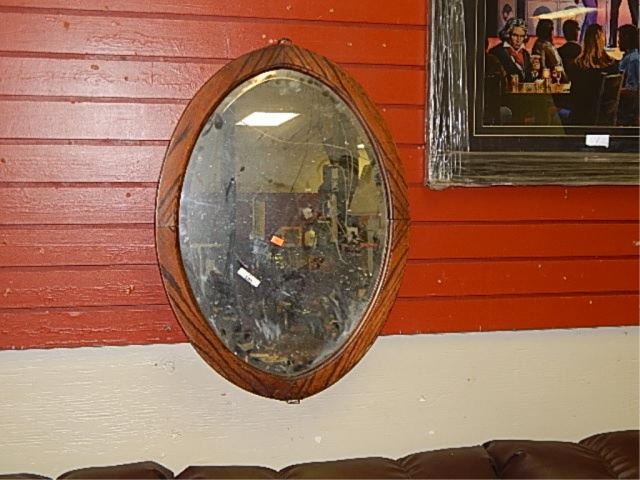 VINTAGE OAK FRAMED MIRROR - OVAL - FOR WASH STAND OR VANITY OR ON WALL