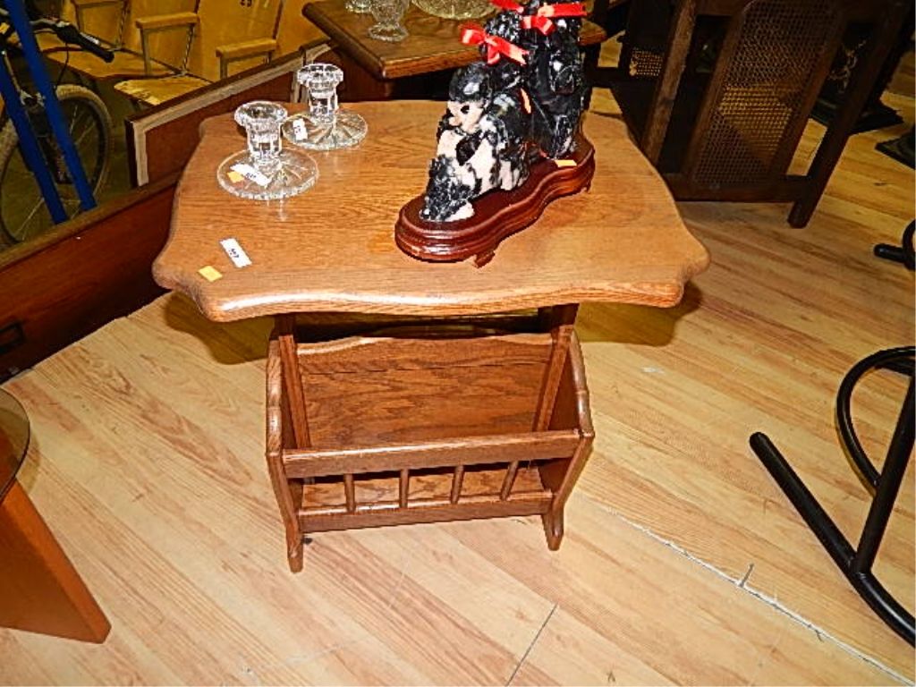 VINTAGE OAK SIDE TABLE & MAGAZINE STAND