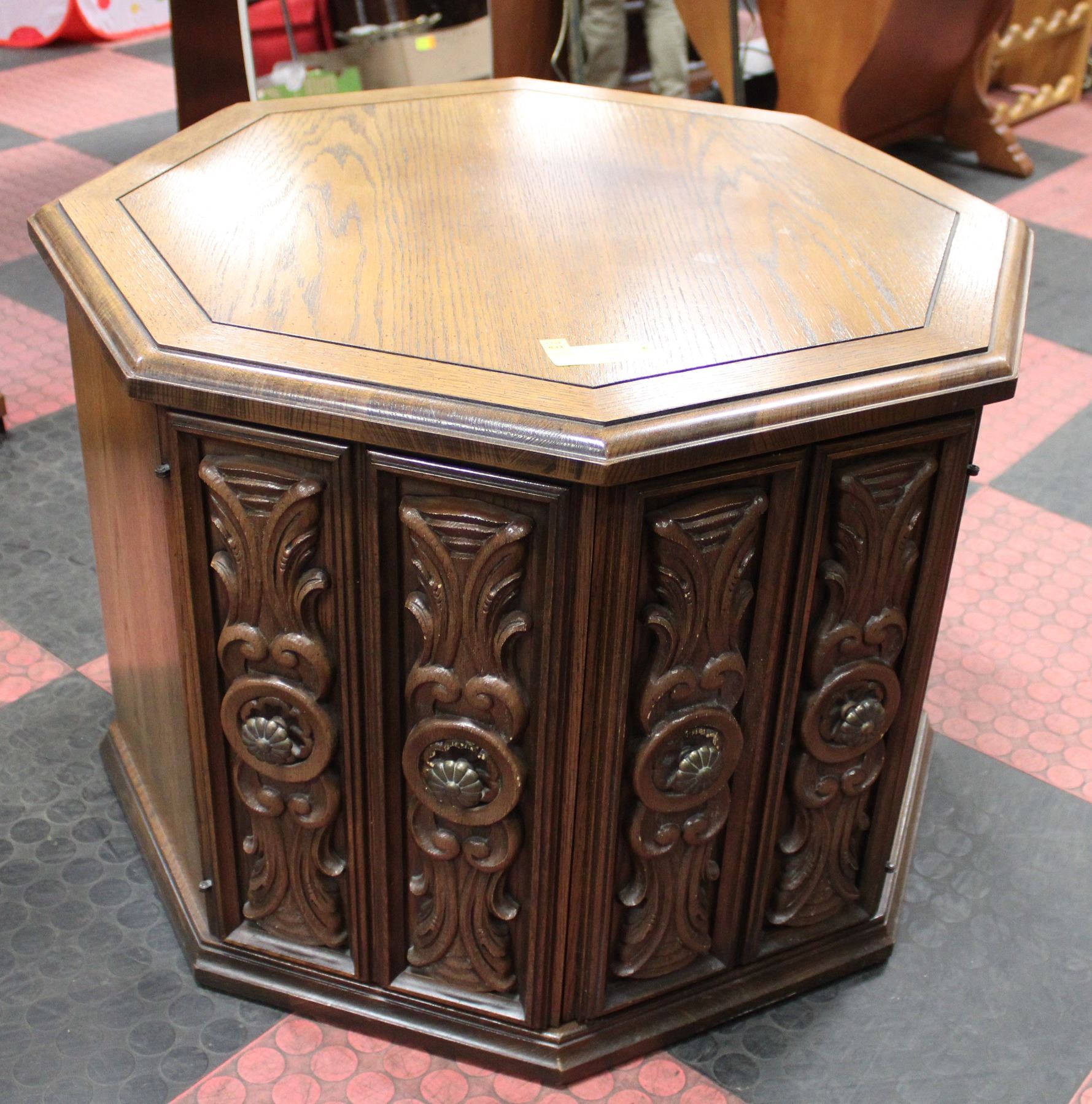 VINTAGE OCTAGONAL OAK SIDE TABLE H-28"