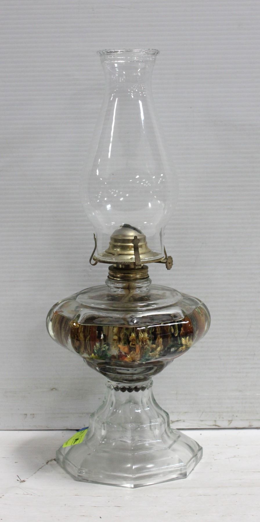 VINTAGE OIL LAMP WITH FLOWERS FOR DECOR INSIDE