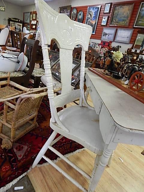 VINTAGE OLD CANADIAN PRESS BACK CHAIR - WHITE