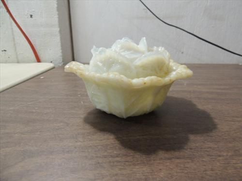 VINTAGE OPALESENT CABBAGE OR LETTUCE COVERED CANDY DISH. AS SHOWN. VIEW PICTURE FOR DETAIL.