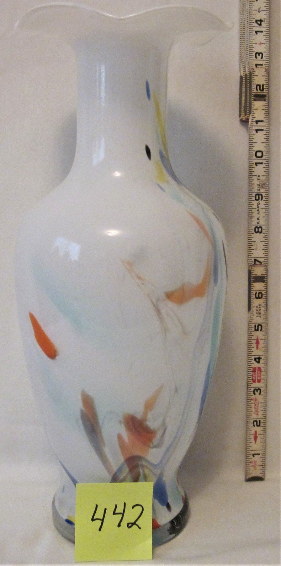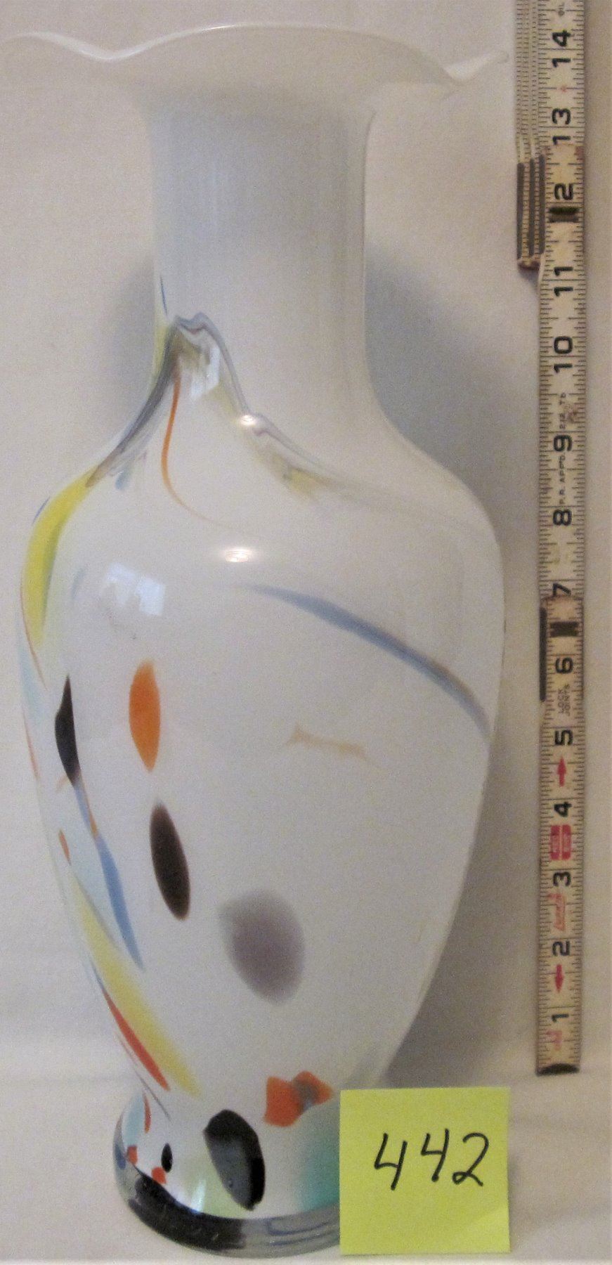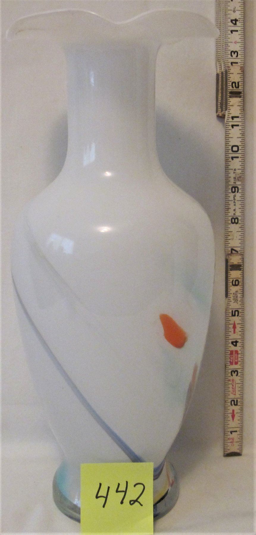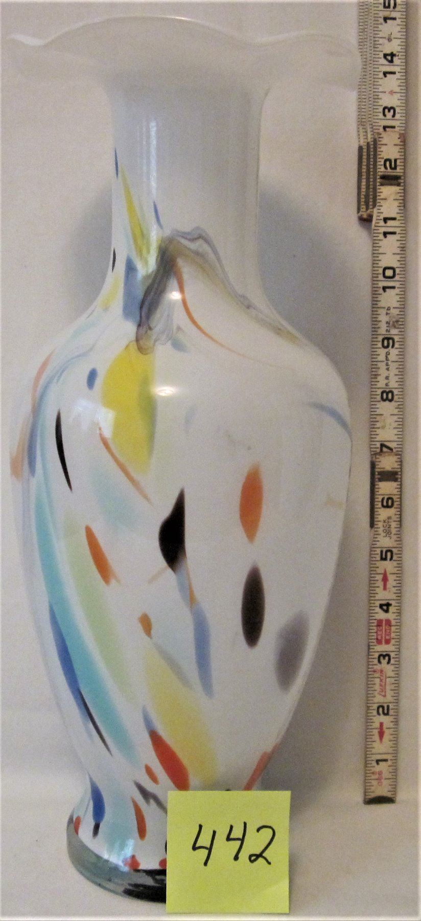VINTAGE OPAQUE/MLK GLASSWARE VASE- MULTI COLOR ABSTRACT DESIGN