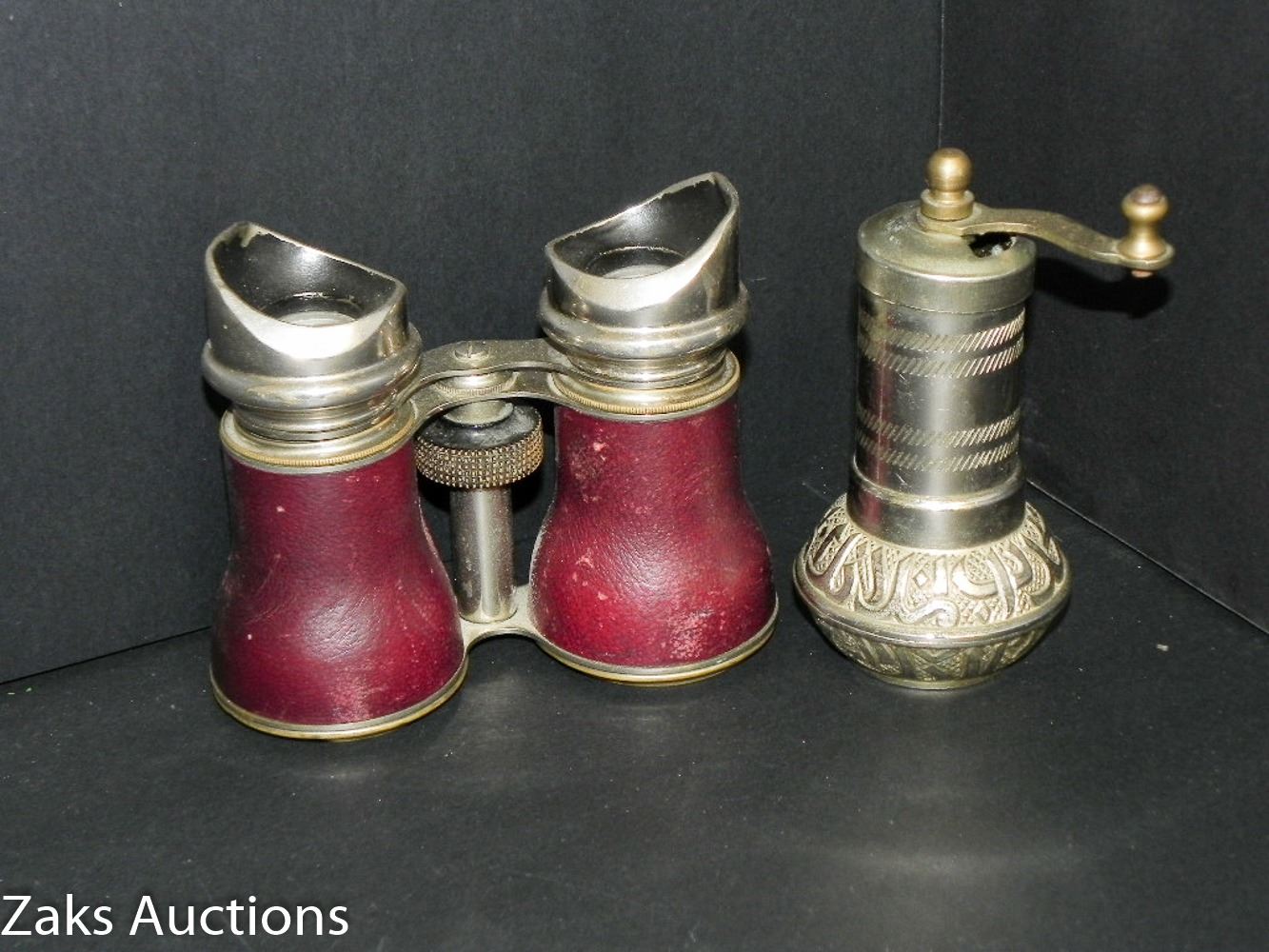 VINTAGE OPERA BINOCULARS WITH PEPPER GRINDER. THE RED PART IS WOODEN. THEY ALL WORK GREAT