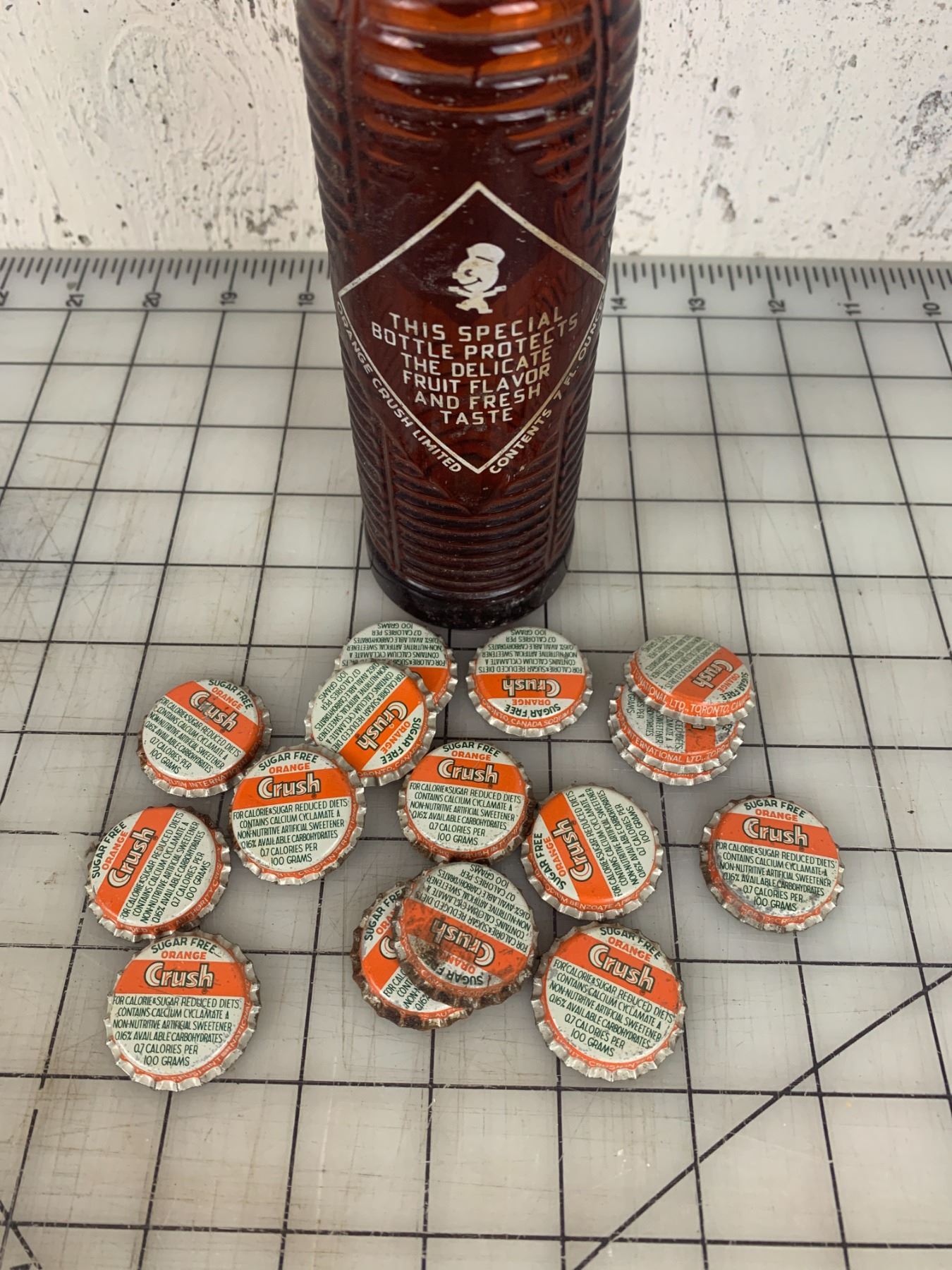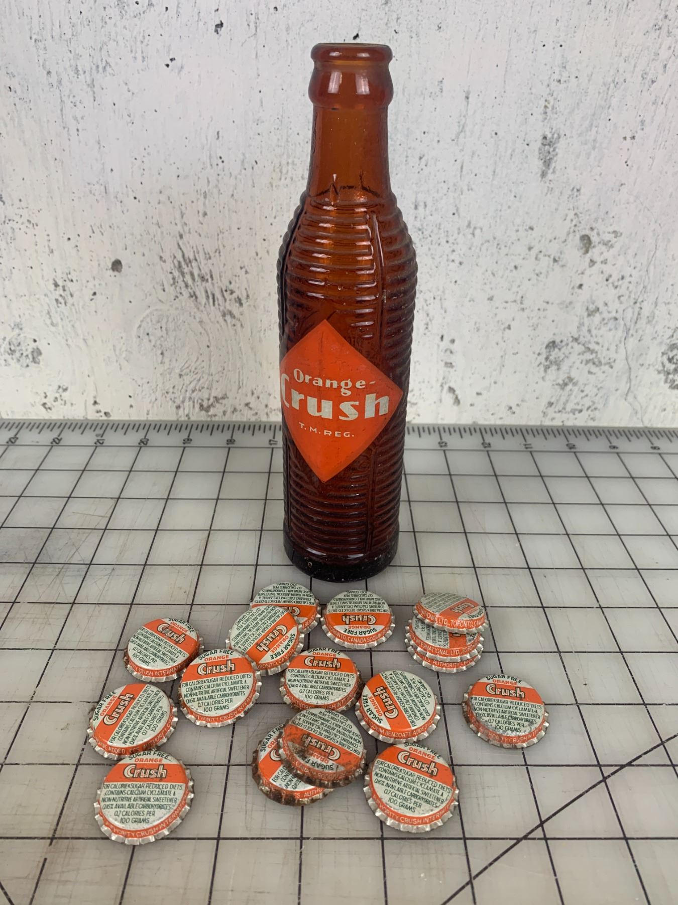 VINTAGE ORANGE CRUSH POP BOTTLE AND CORK LINED CAPS
