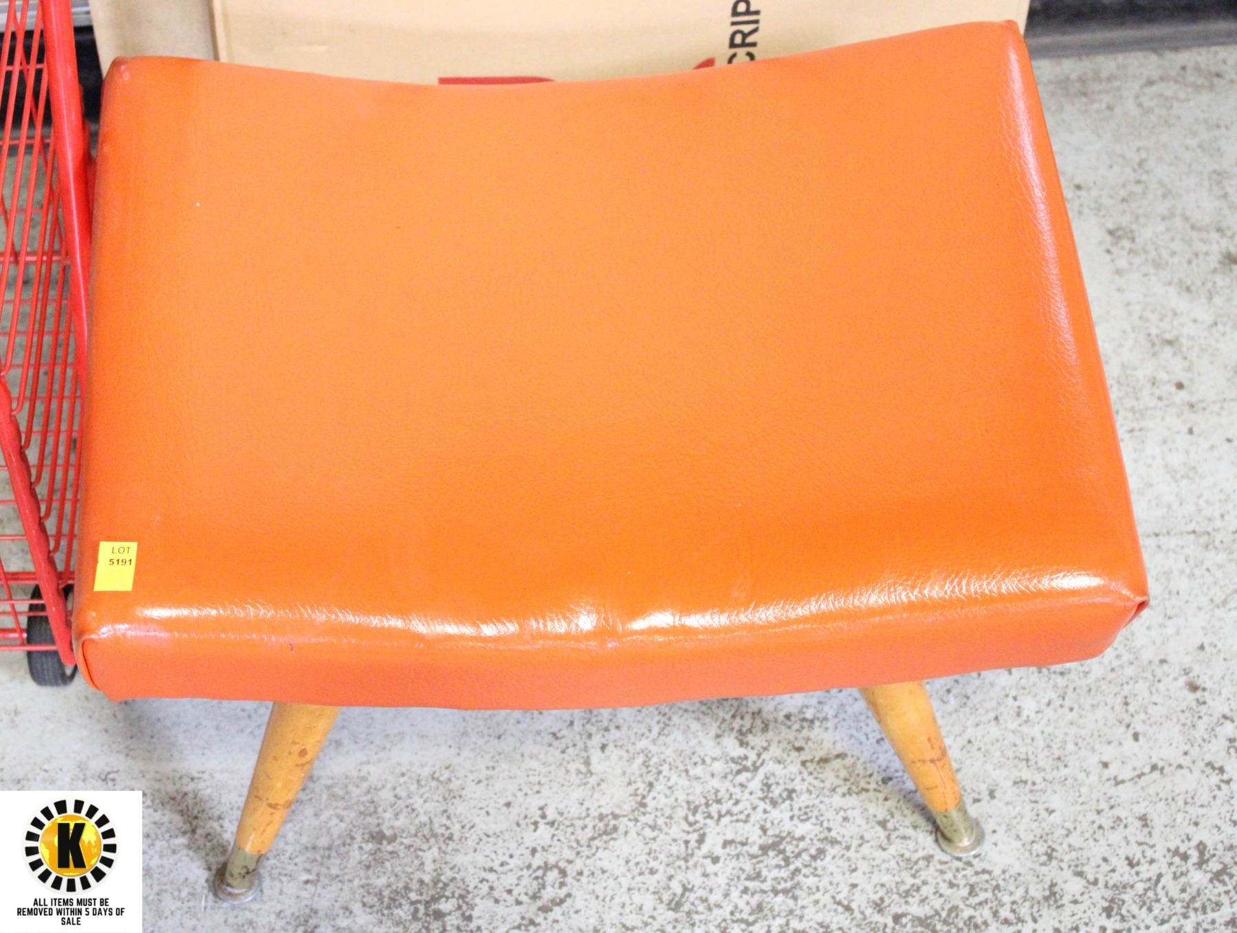 VINTAGE ORANGE STOOL (20"X16"X13" HIGH)