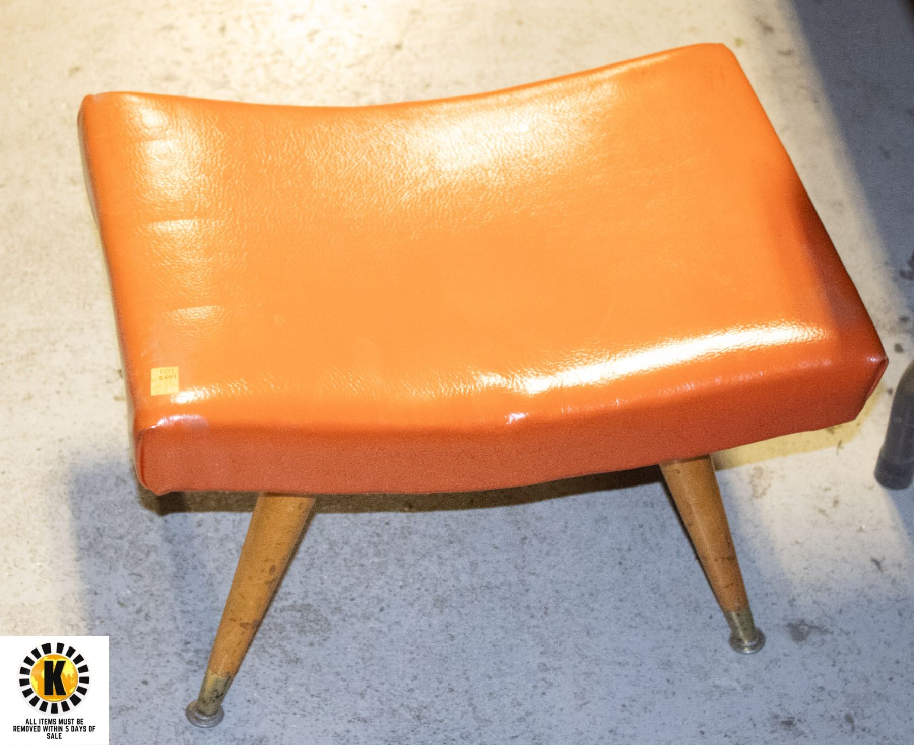VINTAGE ORANGE STOOL (20"X16"X13" HIGH )