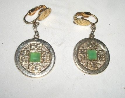 VINTAGE ORIENTAL EARRINGS WITH JADE GEMSTONE CENTERS-CLIP ON STYLE!! EARRRINGS CAME OUT OF SAFE!! ***Coin, Currency & All Items Listed in this auction - Grades, Conditions and Values are not Safe Deposit Coins LLC Responsibilty. Grades, Condition and Values are determined by Consigner(s) & Buyers ONLY***