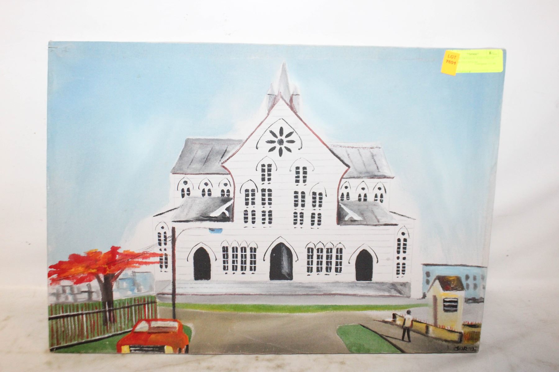 VINTAGE ORIGINAL PAINTING OF CHURCH ON CANVAS