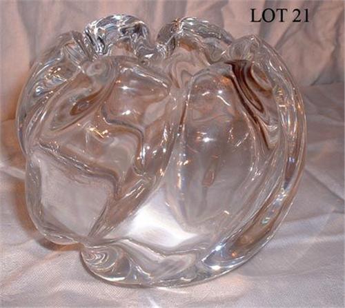 SPHERICAL ROSE BOWL OR VASE WTTH TWISTING DESIGN, UNDERSIDE W/ ETCHED MARK "ORREFORS 2444/5" - 4 1/4" H X 5 1/4" W, WEIGHING 3.8 LBS.