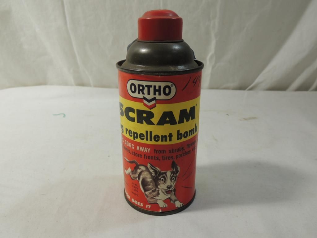 VINTAGE ORTHO SCRAM DOG REPELLENT BOMB KEEPS DOG AWAY. AS SHOWN SEE PHOTO FOR MORE DETAILS.