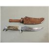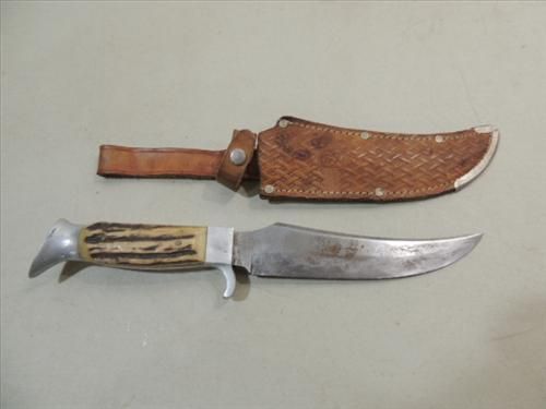 VINTAGE OTHELLO ORIGINAL BUFFALO SKINNER KNIFE & LEATHER SHEATH. AS SHOWN. VIEW PICTURE FOR DETAIL.