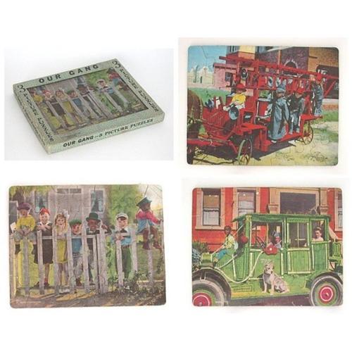 Spectacular and rare set of 3 OUR GANG PICTURE PUZZLES in original box, published by "The Saalfield Pub. Co.," each puzzle marked "© MCMXXXIII BY HAL ROACH STUDIOS, INC.," box and puzzles excellent condition, complete! Box measures 8" x 10".
