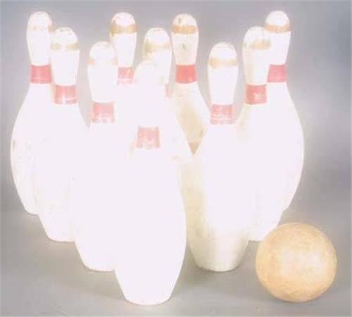 VINTAGE PAINTED WOOD LAWN BOWLING PINS WITH BALL circa 1930