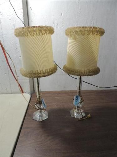 VINTAGE PAIR 1940S GLASS & BRASS BEDROOM LAMPS. 21"H. AS SHOWN. VIEW PICTURE FOR DETAIL.
