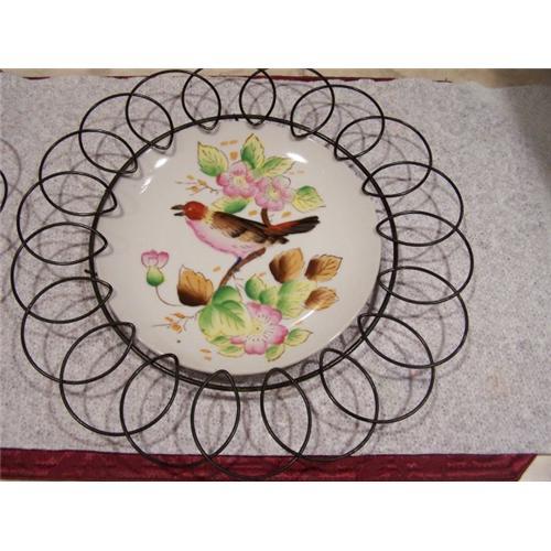 1940'S HAND PAINTED BIRD PLATES/PLAQUES - VINTAGE MADE IN JAPAN - IN WROUGHT IRON HOLDERS. </em></td>