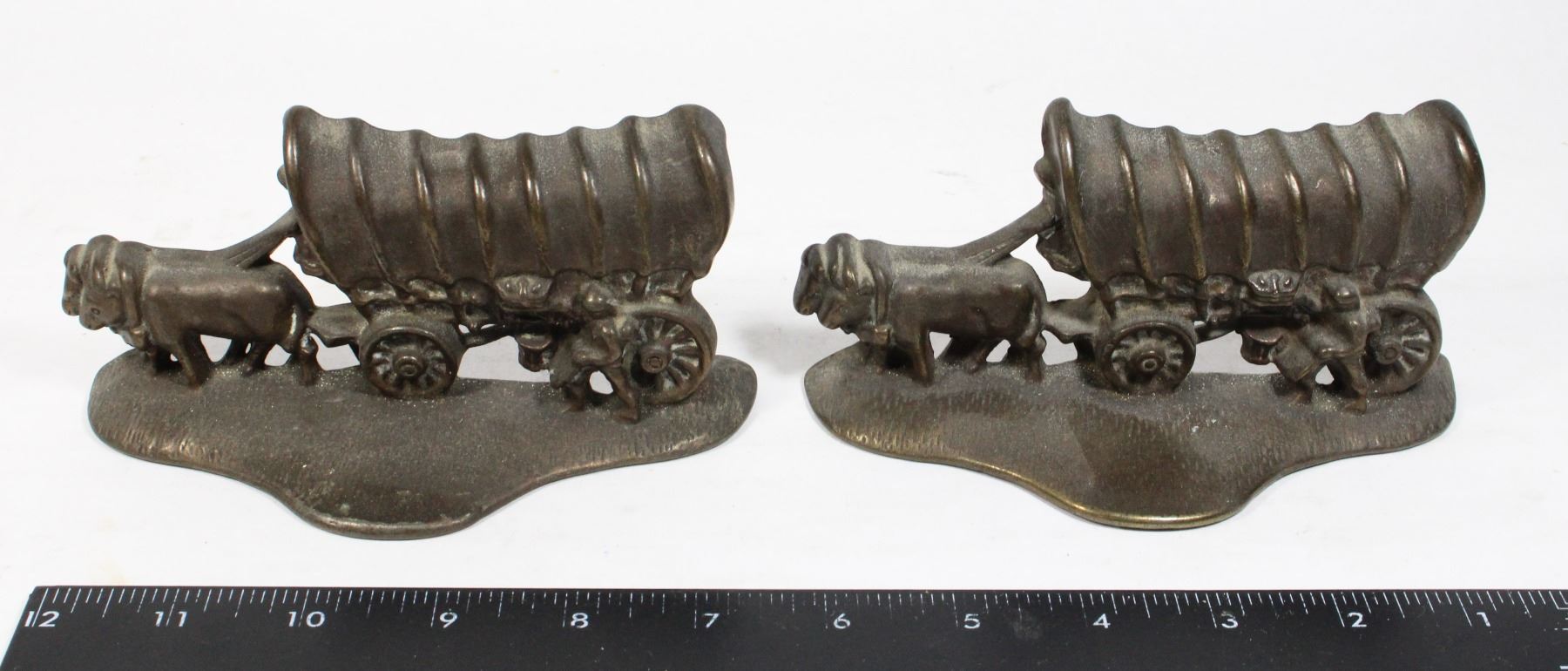 VINTAGE PAIR CAST IRON WAGON BOOKENDS.