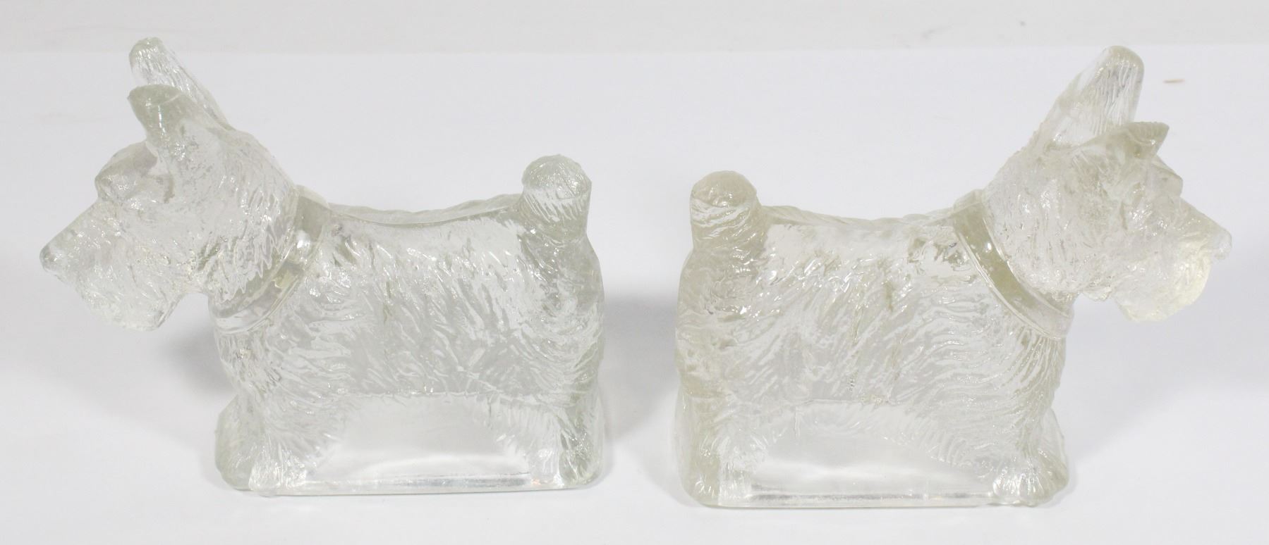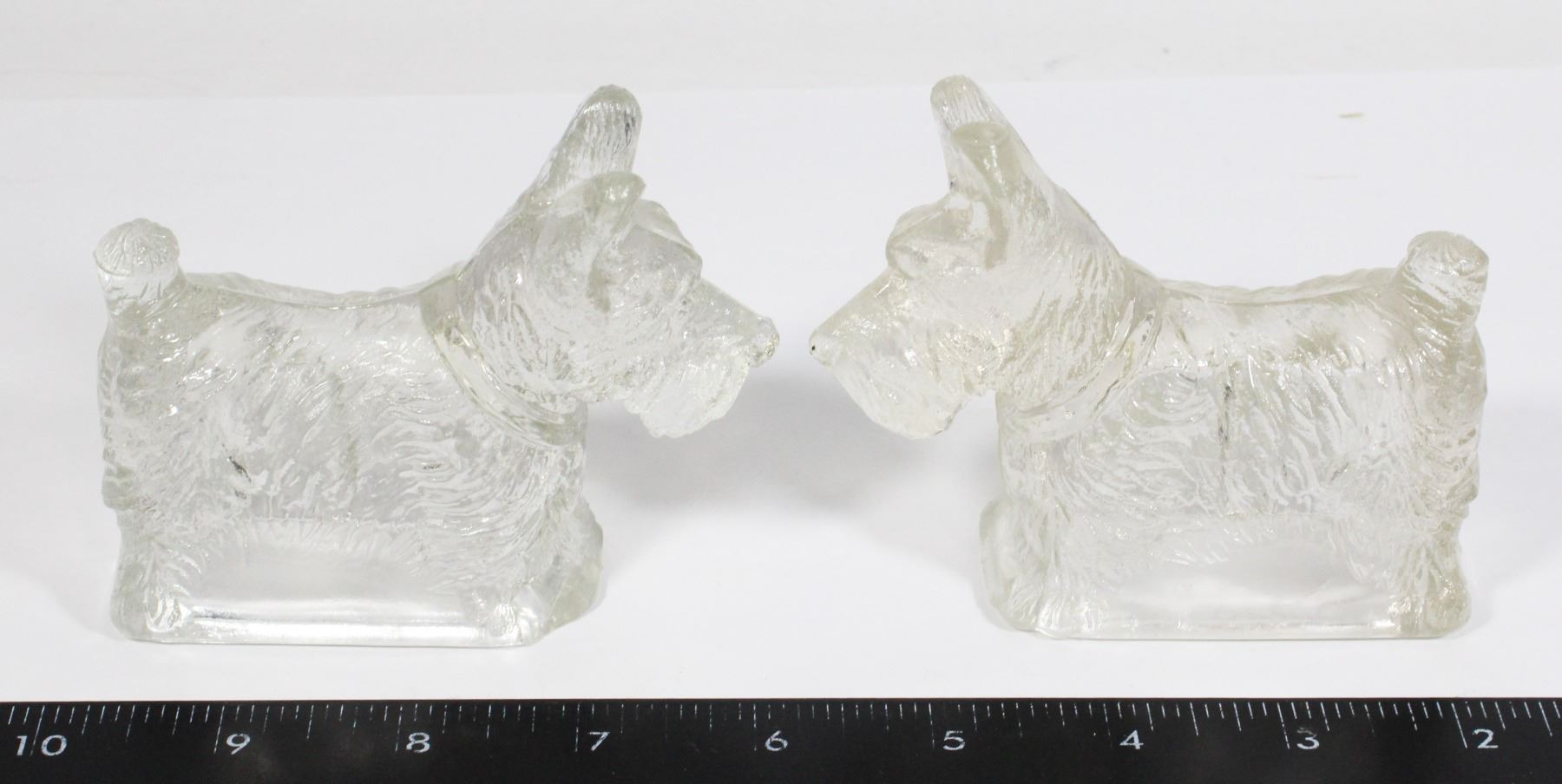 VINTAGE PAIR GLASS TERRIER, 7X4CM.