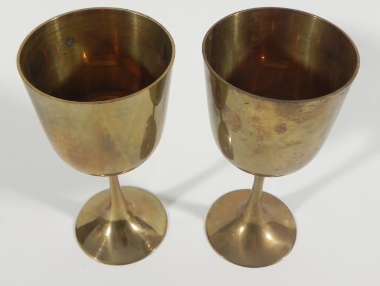 VINTAGE PAIR OF BRASS GOBLETS- 5 1/2"" TALL SAME"