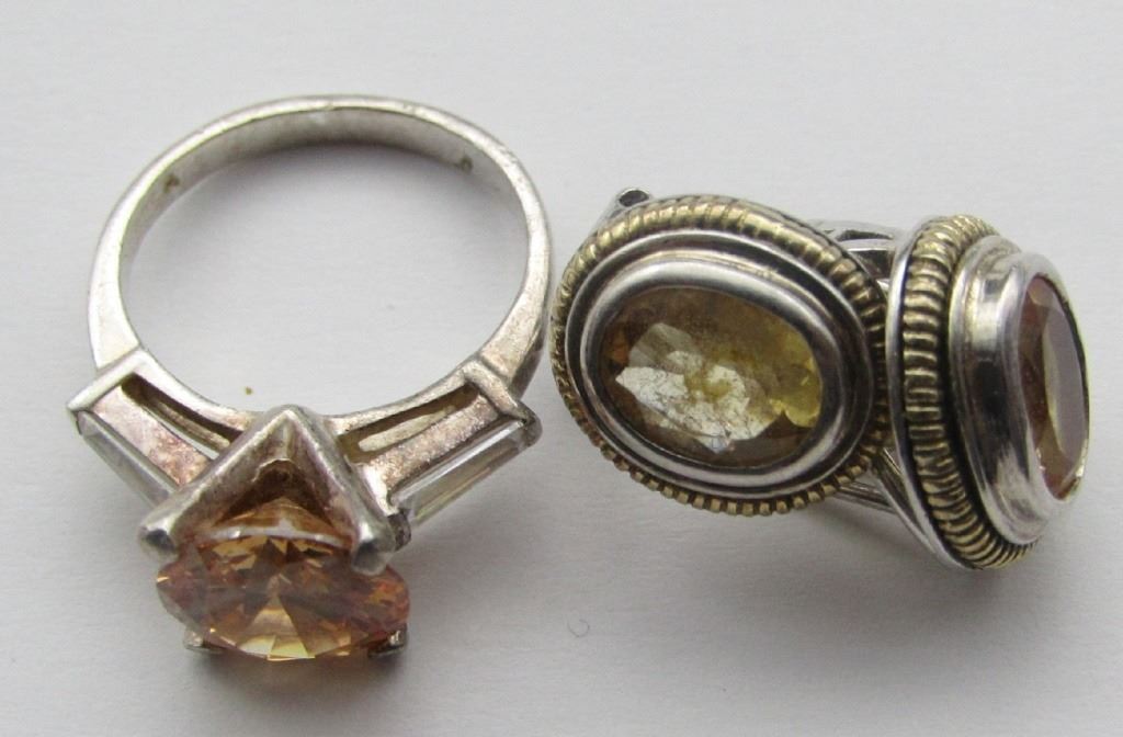 RING SIZE 6.5. WITH LIGHT ORANGE STONES. TOTAL 7.6 DWT