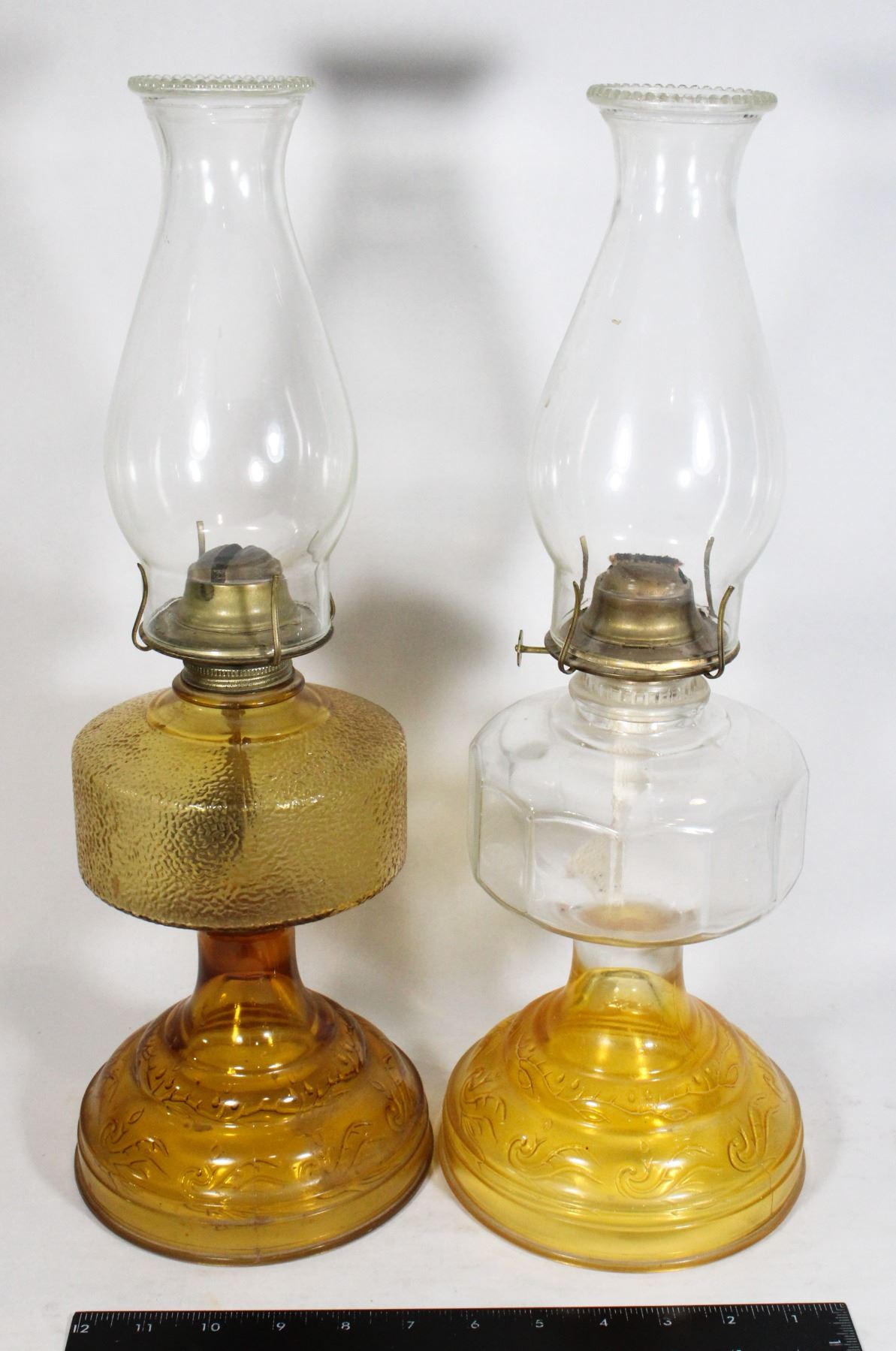 VINTAGE PAIR OF GLASS OIL LAMPS