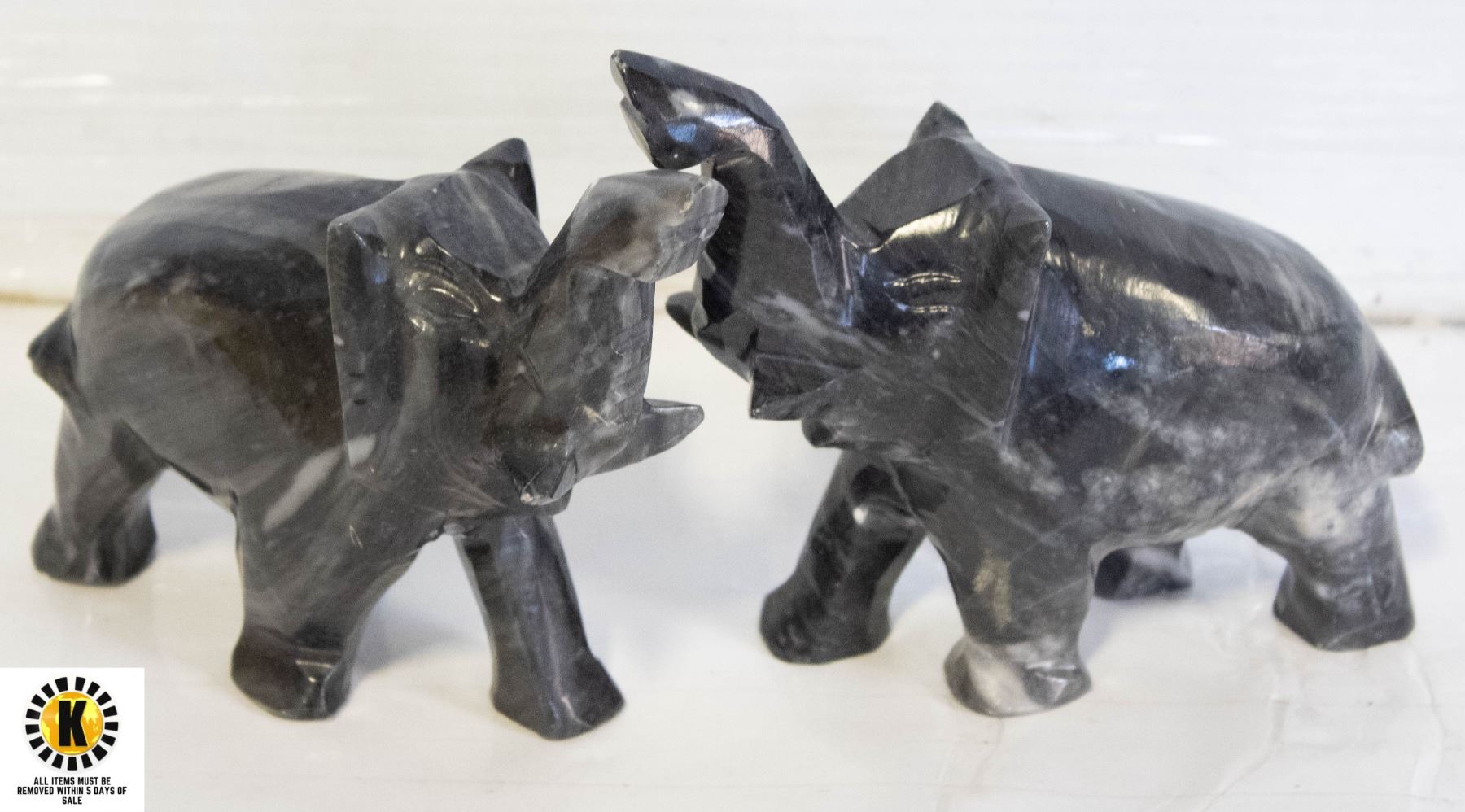 VINTAGE PAIR OF ONYX ELEPHANTS